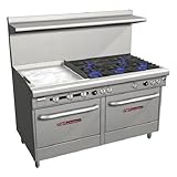 Southbend 4606DD-2GL 60 3/4" Restaurant Mixed Top Range - Ultimate 400 Series. The 60 3/4" Restaurant Mixed Top Range - Ultimate 400 Series (4606DD-2GL) is an incredibly robust and versatile mixed top restaurant range expertly manufactured by Southbend. The sixty-inch wide range top gives you maximum flexibility and features a 24" griddle that produces 48, 000 BTU on the left side of the range top and a combination of Pyromax and star-shaped, non-clog burners on the right side. Each of the three star-shaped, non-clog burners along the front produce 33, 000 BTU while the two Pyromax burners along the back produce 40, 000 BTU each. This range's base features two standard ovens that produce a full 45, 000 BTU each and are equipped with porcelain-enamel interiors. Features: Snap action thermostat, 6" high adjustable legs, Heat resistant door handles, Clog-free cast iron burners, Porcelain enamel oven interiors, 24" griddle produces 48, 000 BTU, Open burners equipped with standing pilots. Benefits: Cast iron grate top capable of holding 14" stock pot, Removable one piece drip tray catches grease under burners, Standard ovens are equipped with flame failure devices for improved safety, Stainless steel front, sides and shelf for improved durability and corrosion resistance, Counter-balanced, heavy-duty oven doors will stand up to harsh use and eliminate sagging, Combination range top features two different burners and a griddle for incredible versatility while cooking. Additional ConsiderationsMany customization options and accessories are also available. Please contact one of our friendly Product Experts at 1-877-877-4379 for additional information or to customize your own!