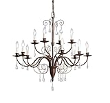Kichler Lighting 1633TZ Barcelona 12-Light Chandelier, Tannery Bronze with Clear Glass Teardrops
