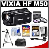 Canon Vixia HF M50 Flash Memory 1080p HD Digital Video Camcorder with 16GB Card + LED Video Light + 3 (UV/FLD/PL) Filters + Tripod + Case + Accessory Kit