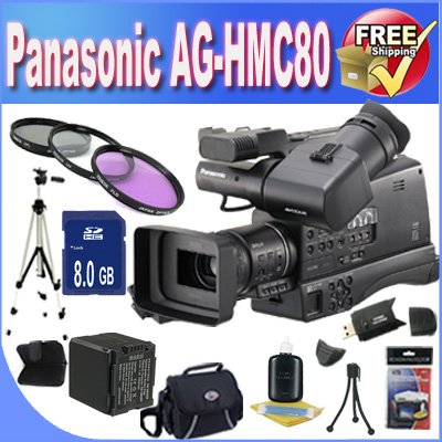 Panasonic AG-HMC80 3MOS AVCCAM HD Shoulder-Mount Camcorder + Extended Life Battery + 8GB SDHC Class 10 Memory Card + USB Card Reader + Memory Card Wallet + Shock Proof Deluxe Case + 3 Piece Professional 43mm Filter Kit + Professional Full Size Tripod + Accessory Saver Bundle!