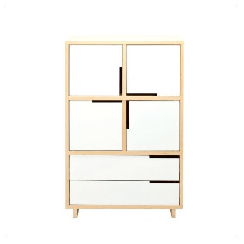 Blu Dot Modu-licious No. 6 Storage by Blu Dot, finish = Maple; drawer color = Robin's Egg BlueSpecifications: Materials: Hardwood veneers in Maple, Graphite on Oak and Walnut. Powder coated steel doors. **Tip: Pair this dresser with Modu-licious No. 3 and you have a great wall unit for any room. Dimensions: W31.5" D18" H49.5" The Modu-licious line allows you to choose a different color for each drawer if you like! Please contact the seller with your selections, specifying colors (Slate, White, Robin's Egg Blue, Ivory, Grey Blue) for each drawer.