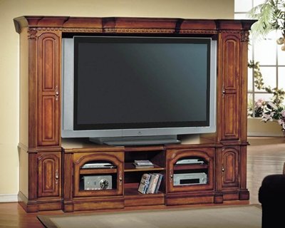 Parker House - Premiere Turino Space Saver TV Wall PTU-125-4X? The Turino Expandable TV Entertainment Wall by Parker House is truly a stunning unit. Designed in an Italian Classic Style. The Turino can accomodate TVs from 48 to 65 inches. Featuring a can light system with a 3-way touchdimmer switch. The pier cabinets offer abundant storage for all your media. Finished in a multi-step Warm Pecan, with shaded and hand rubbed highlights. Traditional antique brass knobs and backplates. The TV console fits TVs from 48-65 inches. The console has two permanent shelves and three expandable shelves and two glass doors Piers accomodate up to 250 CD's or 180 DVD's Multi-step Warm Pecan finish, with shaded and hand rubbed highlights. Dimensions: 78.75W x 21D x 74H to 95.75WFree Standard Home Delivery.