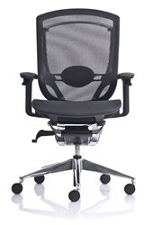 #Monterey High Back Multi-Function Executive Chair with Eco Leather (PU) Seat MH6333A2 by Ergo Office Seating2 to 1 synchro-tilt mechanism, 5 position tilt lock, Hand controls at the arm rest, Seat slider, Knee tilt, Adjustable lumbar support, Adjustable back pitch, Tilt tension control, Height adjustable pivoting arms, Pneumatic seat height adjustment, 60mm dual wheel casters, Elastomeric black mesh seat and back, Polished aluminum base and frame