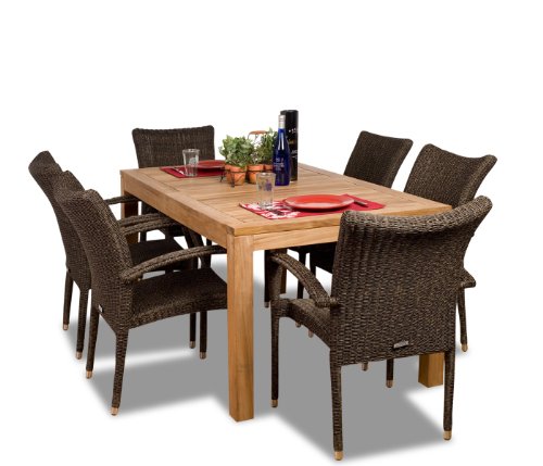Amazonia Teak Brussels 7-Piece Teak/Wicker Rectangular Dining Set