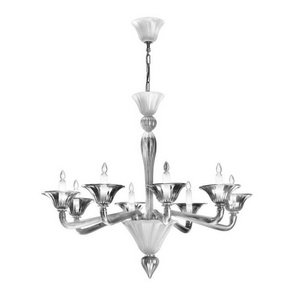 Zaneen D8-1323 Puskin - Eight Light Chandelier, Chrome Finish with White Glass